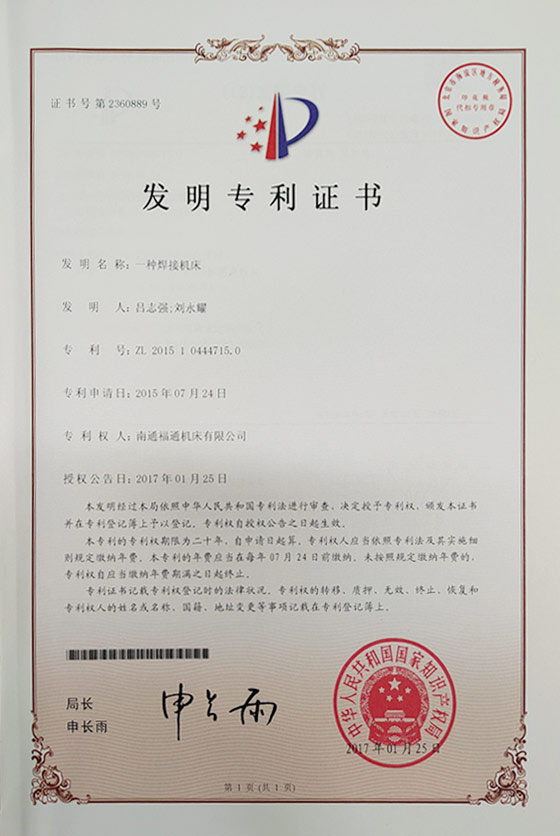发明专利:一种焊接机床,专利号:ZL 2015 1 0444715.0